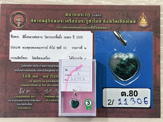 (เคาะแดง1500) +ติดที่3สมาคม สีผึ้งเขียว หลวงพ่อทาบ วัดกระบกขึ้นผึ้ง
