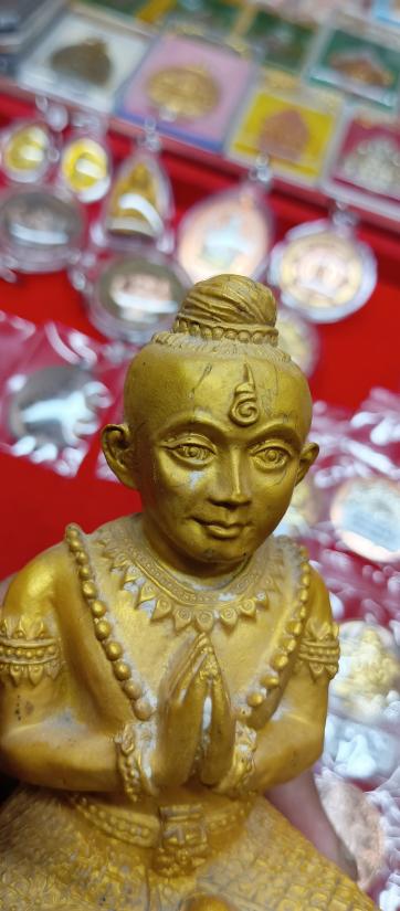 กุมารทอง ขนาดบูชา หน้าตัก3นิ้ว จัดสร้างปี 2549 หลวงพ่อสาคร วัดหนองกรับ เนื้อดิน7โป่ง 7ยอดจอมปลวก ทาทอง ฐานปูปลาฯ มีจารทั้งองค์ สวยเดิม รายการหายาก พบเจอน้อยมากๆ หายากครับไม่ค่อยมีหมุนเวียนให้เห็น ถ้าเป็นเนื้อโลหะ กุมารของหลวงพ่อสาครราคาไปไกลมากแล้วครับ รุ่นนี้เป็นเนื้อดิน 7 โป่ง สามารถเก็บไว้ใช้แทนได้เหมือนกันครับ หลวงพ่อสาครปลุกเสกมีลงในหนังสือหลวงพ่อชัดเจน |