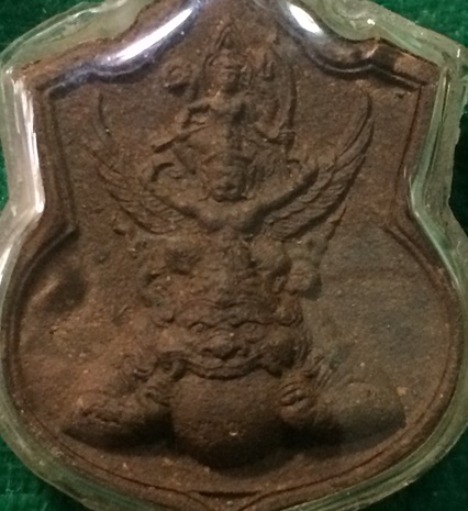 พระนารายณ์ทรงครุฑประทับบนพระราหู ท่านเจ้าคุณธงชัย วัดไตรมิตร เนื้อผงพุทธคุณ รุ่นแรก หลังยันต์ดวง ปี 2545 เนื้อน้ำตาล