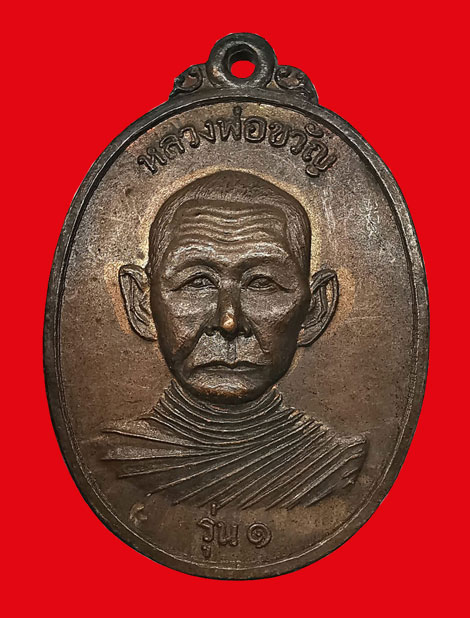 เหรียญหลวงพ่อขวัญ วัดท้องอ่าว รุ่นแรก เนื้อทองแดง ปี2518 จ.สุราษฎร์ธานี + บัตรG-pra สภาพเดิมค่ะ