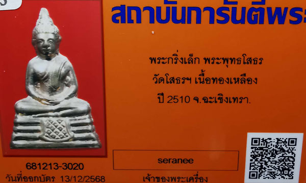 พระกริ่งเล็กพระพุทธโสธร วัดโสธรฯ เนื้อทองเหลือง กริ่งดัง ปี2510 จ.ฉะเชิงเทรา + บัตรG-pra สภาพสวยเดิมค่ะ สภาพตามรูปทุกประการค่ะ