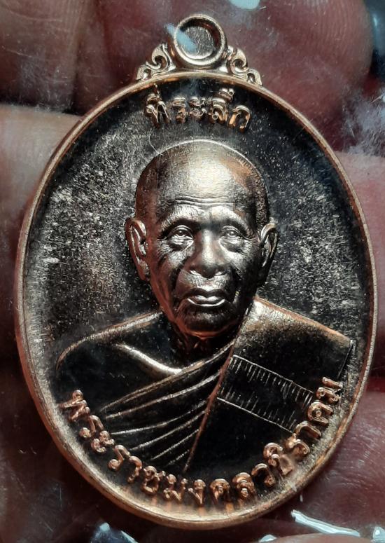 เหรียญเลื่อนสมณศักดิ์หลวงปู่แผ้ว วัดรางหมัน เนื้อทองแดง พร้อมกล่อง เคาะเดียว