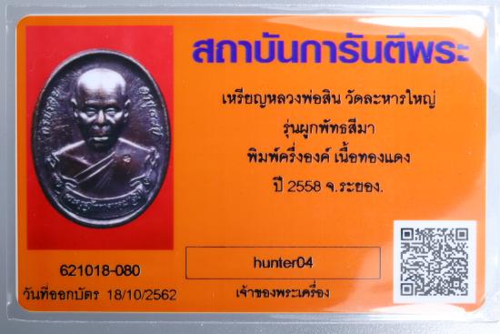 เหรียญหลวงพ่อสิน วัดละหารใหญ่ รุ่นผูกพัทธสีมา พิมพ์ครึ่งองค์เนื้อทองแดง ปี2558 พร้อมกล่องเดิม |