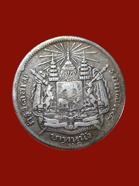 เหรียญบาทหนึ่ง รัชกาลที่ 5 หลังตราแผ่นดิน ร.ส.๑๒๑ เนื้อเงิน
