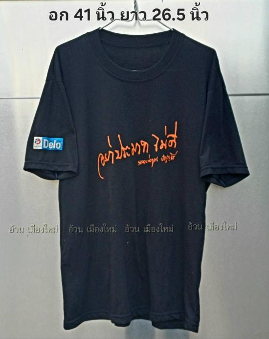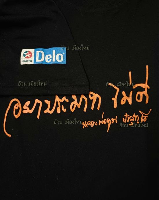 เสื้อยืด ( สีดำ ) สกรีนลายมือ หลวงพ่อคูณ ( อย่าประมาณไม่ดี ) แถมน้ำมันเครื่องคาสเท็กซ์ เดโล่ พ.ศ.2544 ( มือ 2 , อก 41 นิ้ว , ยาว 26.5 นิ้ว )