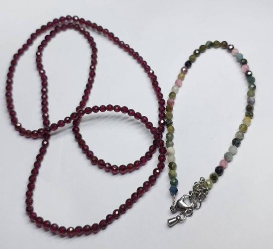 ***วัดใจ***สร้อยโกเมนเจียเหลี่ยม เล่นแสง ขนาดเล็ก 3 mm. ยาว 21 นิ้ว กับข้อมือทัวร์มาลีน Tourmaline ขนาดเล็ก 3 mm