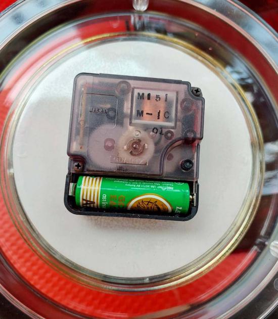 มีนาฬิกาควอตซ์ทรงกลมฝังอยู่ด้านบน