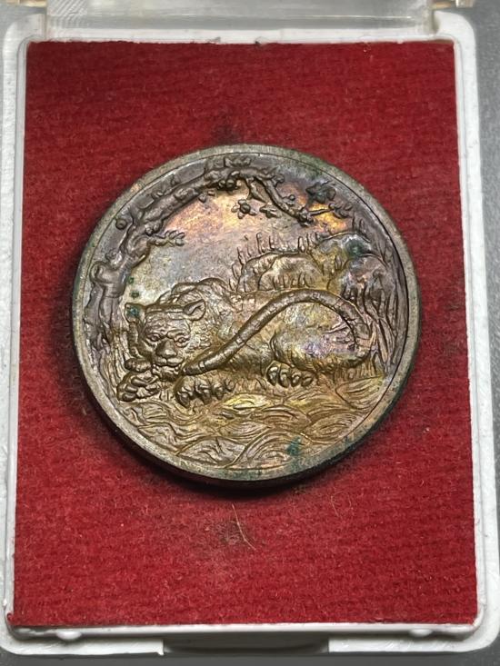 เหรียญพญาเสือเฒ่า เนื้อทองแดง พระอาจารย์ประสูติ วัดในเตา แช่น้ำมันเสือ