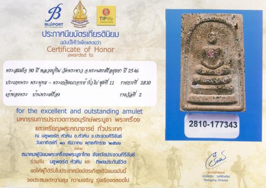 สมเด็จหลังรูปเหมือน ปี 46 หลวงปู่ทิม วัดพระขาว ครบ 90 ปี เนื้อชานหมาก ด้านหน้าโรยพลอยเสก ด้านหลังฝังตะกรุดเงิน เเละผสมเส้นเกศา สวยพร้อมใบประกาศครับ