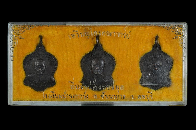 ++ผู้จัดสร้าง : คณะคุณครูโรงเรียนบ้านเกาะรัง 3 ท่าน ยังขาดเงินสร้างหอสมุด ได้คิดจัดสร้างวัตถุมงคล และ ศรัทธาของคุณครูแต่ละท่านนับถือเกจิคนละเกจิ จึงเกิดเหรียญชุดไตรคณาจารย์ 3 เกจิ หลวงพ่อคูณ , หลวงพ่อจวน , หลวงพ่อแพ นำวัตถุมงคล ปลุกเสก 3 วัด 3 หลวงพ่อ