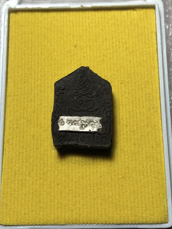 ด้านหน้าฝังหมุดเงิน และหมุดทองคำ , ด้านหลังฝังตระกรุดทองคำ หลวงปู่บัว ถามโก อธิษฐานจิตปลุกเสก ๑ ไตรมาส