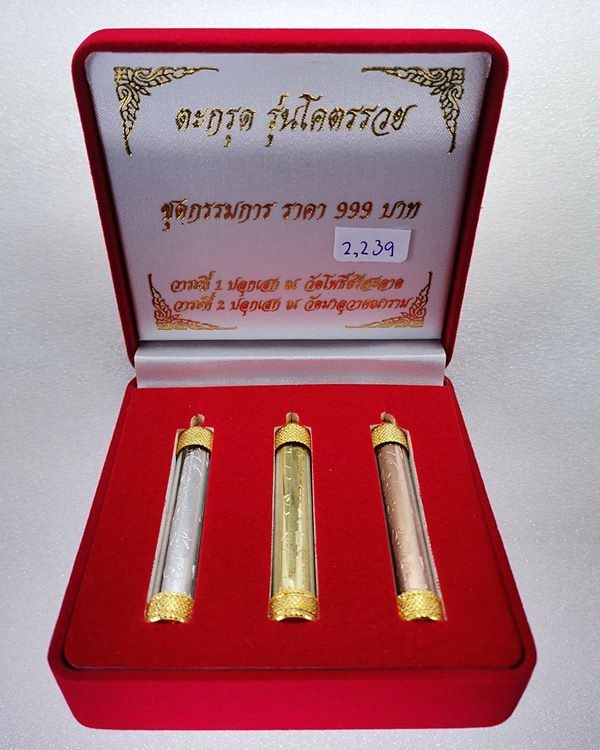 ตะกรุดโคตรรวยสวยตรงรูป ตอกโค้ด กก(กรรมการ) หมายเลข 2239 ทั้ง 3 ดอก พร้อมสายคล้องคอ.รับประกันแท้ตามกติกา |