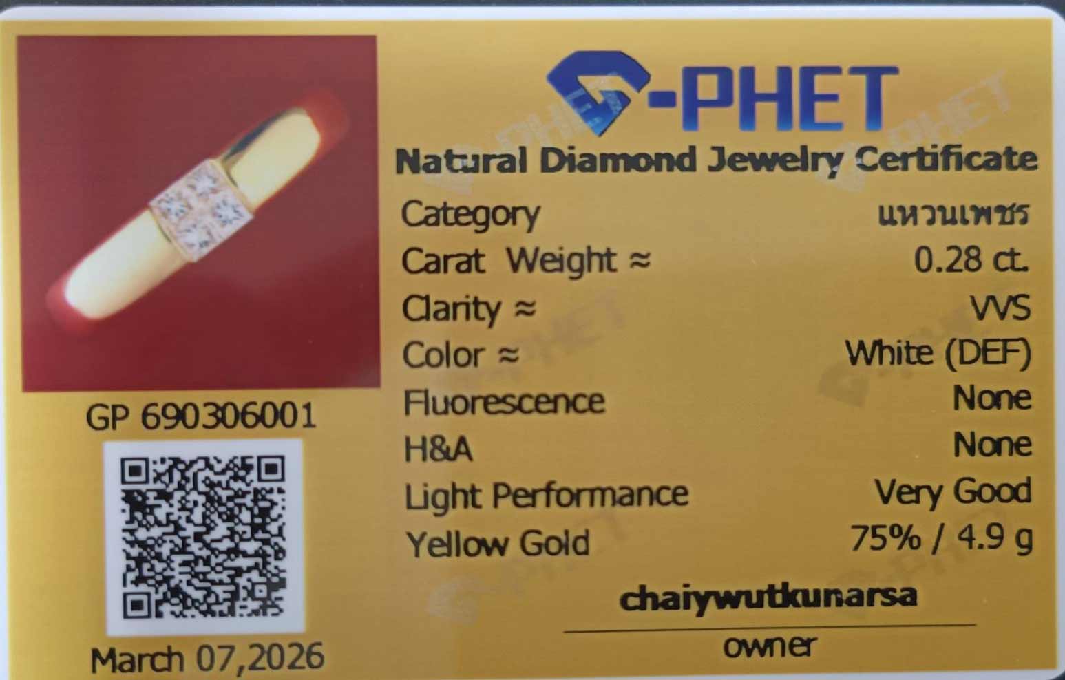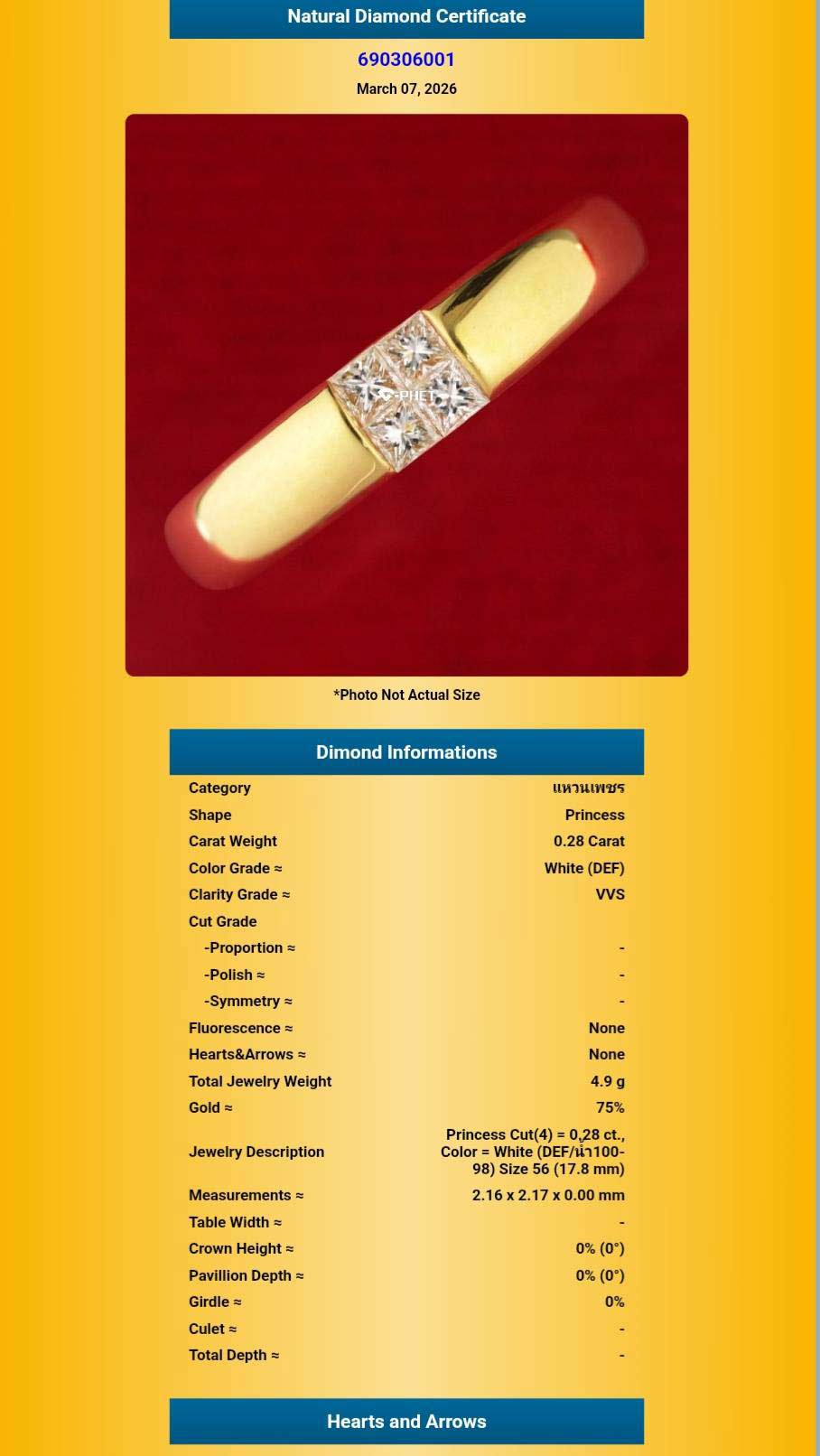 แหวนเพชร 18 k JUBILEE นน. 4.9 กรัม เพชร 0.28 การัต