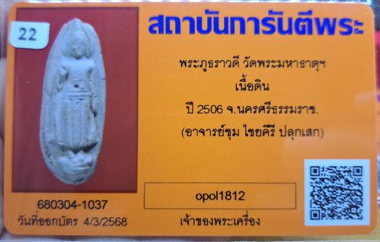 พระภูธราวดี วัดพระมหาธาตุฯ เนื้อดิน ปี06 จ.นครศรีธรรมราช อาจารย์ชุม ไชยคีรี ปลุกเสก พร้อมบัตรรับรอง สภาพสวยเดิมๆๆๆๆๆ