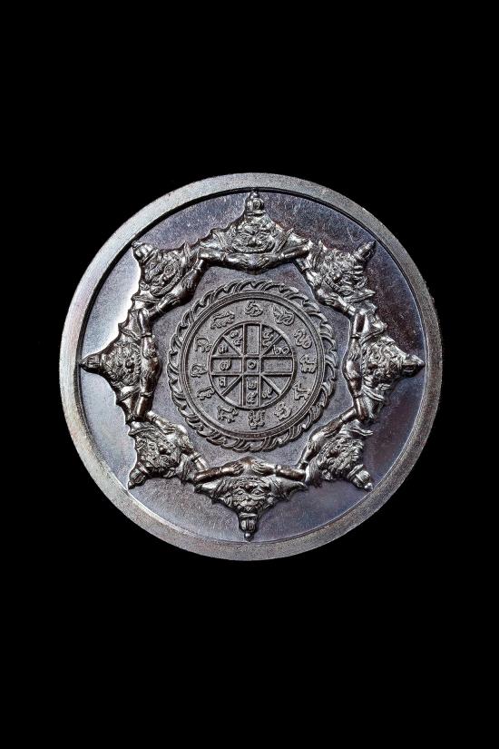 เหรียญปิดตาพังพระกาฬ รุ่น 2 นวะโลหะผิวกลับดำสีเหลือฟ้าสวยมาก