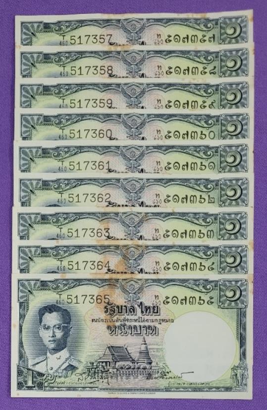 ธนบัตร 1 บาท โทมัส 9 ฉบับ เรียงเลข |