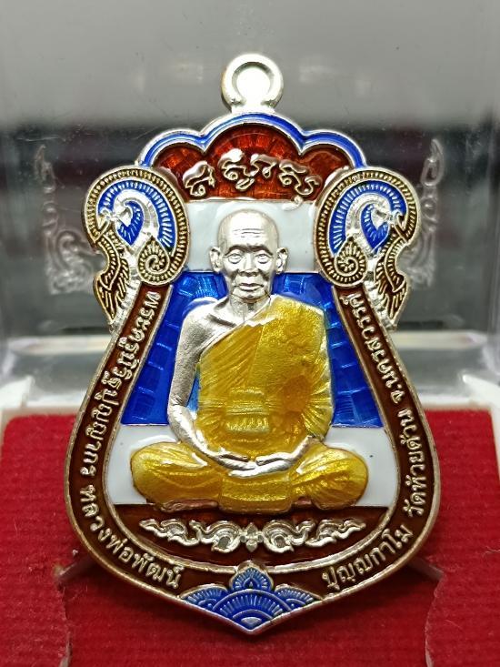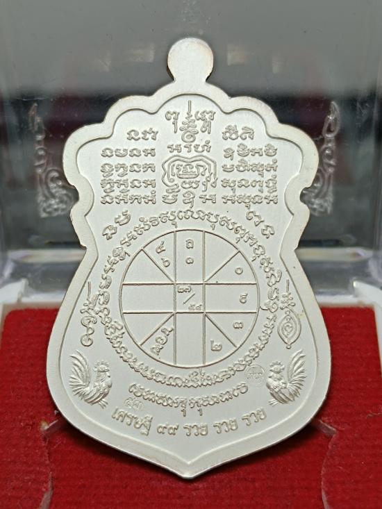 @@ เหรียญเสมา ดวงเศรษฐี๙๙ รวย รวย รวย หลวงพ่อพัฒน์ วัดห้วยด้วน (ขนาดเหรียญสูง 4.0 ซ.ม.) เนื้อเงิน ลงยาลายธงชาติ หมายเลข 53 พร้อมกล่องครับ