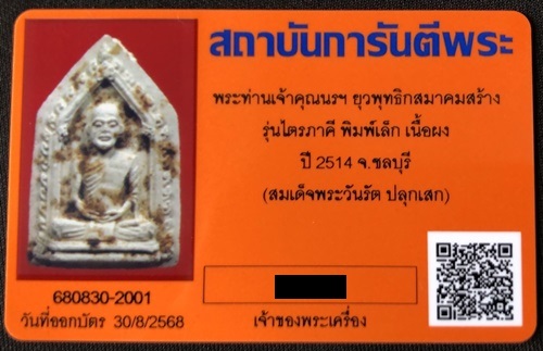 พระท่านเจ้าคุณนรฯ ยุวพุทธิกสมาคมสร้าง รุ่นไตรภาคี พิมพ์เล็ก เนื้อผง ปี 2514 สวยเดิม มาพร้อมบัตรรับรองครับ