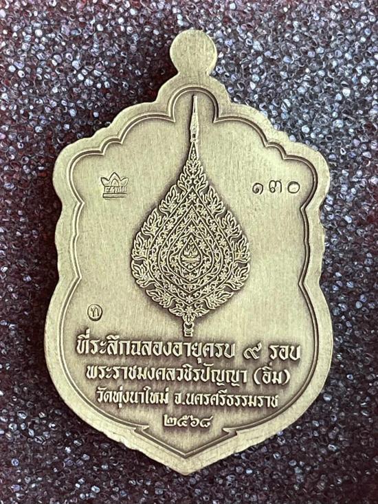 หลวงปู่อิ่ม ปญฺญาวุโธ วัดทุ่งนาใหม่ จ.นครศรีธรรมราช เหรียญ เสมา 9 รอบ เนื้อทองทิพย์ซาติน สร้างน้อย