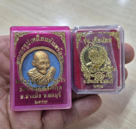 เคาะเดียว 2 องค์เลยครับ พระผงรูปเหมือนจันทร์ลอย + เหรียญเสือน้อยงยา ซีลเดิมๆ หลวงปู่ฮก รตินธโร วัดราษฏร์เรืองสุข ชลบุรี |