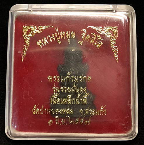 พระแก้วมรกต เนื้อเหล็กน้ำพี้ วัดป่าหนองหล่ม หลวงปู่หมุน ฐิตสีโล หมายเลข ๒๘๗ พร้อมกล่องเดิมจากวัด |