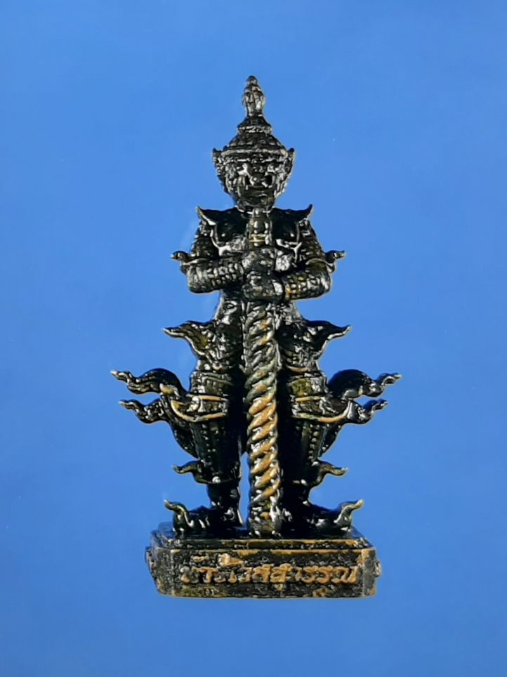 รูปหล่อท้าวเวสสุวรรณ รุ่นแรก เนื้อเหล็กน้ำพี้แช่น้ำมันงาเสก พระครูสังฆกิจบูรพา (หลวงปู่บัว ถามโก) วัดเกาะตะเคียน จ.ตราด