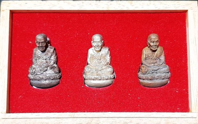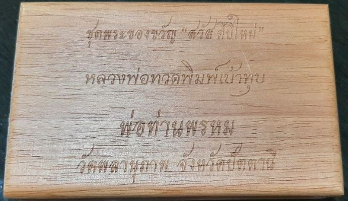 ชุดพระของขวัญ สวัสดีปีใหม่ หลวงพ่อทวดพิมพ์เบ้าทุบ พ่อท่านพรหม วัดพลานุภาพ ปัตตานี บรรจุในกล่องไม้สวยงาม สามองค์สามเนื้อ