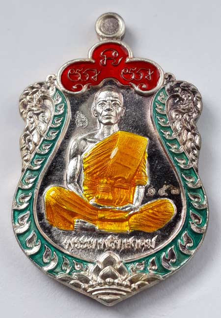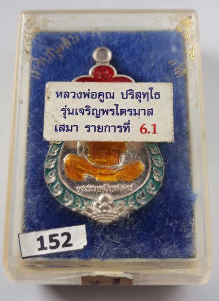 เหรียญเสมา เจริญพร ไตรมาส หลวงพ่อคูณ ออกวัดบ้านไร่ ปี57 เนื้อเงินลงยา3สี เบอร์ 152 พร้อมกล่องเดิมครับ (น้ำหนักเหรียญ 19.24 กรัม)