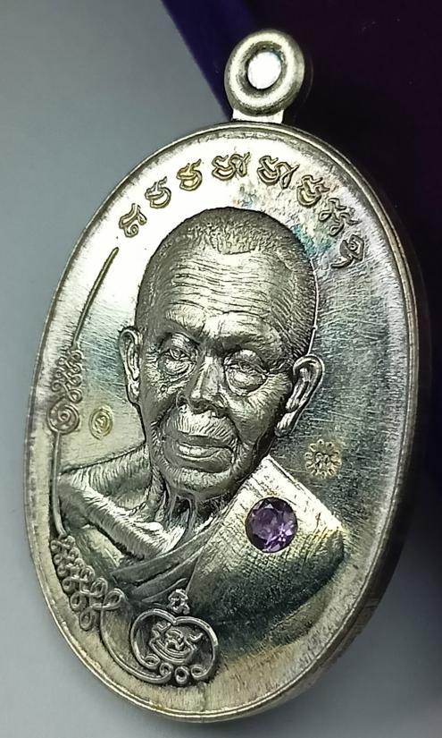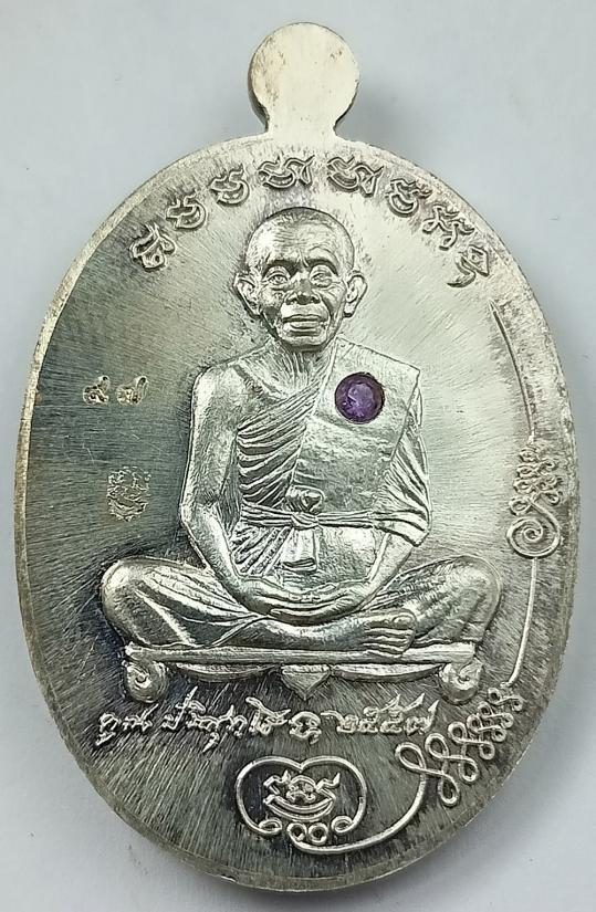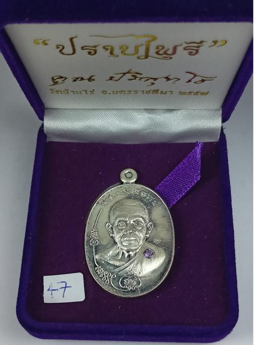เหรียญปราบไพรี หลวงพ่อคูณ วัดบ้านไร่ ปี57 พิมพ์2หน้า"ครึ่งองค์/เต็มองค์" เนื้อเงินฝังพลอย2หน้า (สมนาคุณจองเนื้อเงิน10องค์) เบอร์ 47 พร้อมกล่องเดิมครับ (เหรียญหนัก 17.64 กรัม)