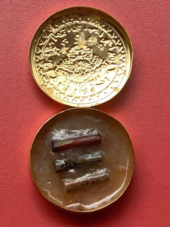 เนื้อ โลหะชุบทองลงยาสีดำขอบสีแดง ขนาด5ซม |