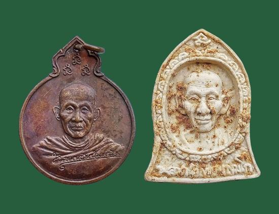 เหรียญลายเซ็นต์ หลัง ภปร เนื้อทองแดง ปี 2529 + พระผงรูปเหมือนทรงระฆัง หลวงพ่อเกษม เขมโก ฉลองครบรอบอายุ 80 ปี พ.ศ.2534