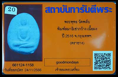 พระผงสมเด็จ พิมพ์สมาธิเข่ากว้าง ปี2516 วัดพลับ กทม ลป.โต๊ะ ปลุกเสกตลอดไตรมาส