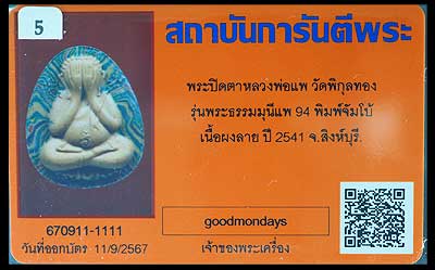 ปิดตาจัมโบ้ เนื้อลาย ปี2541 หลวงพ่อแพ วัดพิกุลทอง สิงห์บุรี |