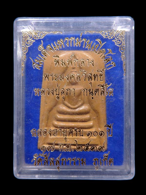 พระสมเด็จแหวกม่านเปิดโลก พิมพ์กลาง กล่องเดิม หลวงปู่สุภา กันตสีโล(พระมงคลวิสุทธิ์) ฉลองอายุครบ 101 ปี 17 ก.ย. 2539 วัดสีลสุภาราม จ.ภูเก็ต