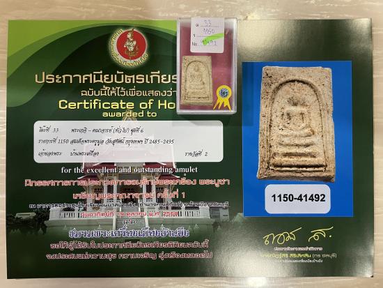 สร้างปี 2485 สภาพสวย สมบูรณ์ ไม่หักไม่ซ่อม รับประกันพระแท้ ดูง่าย ใบประกาศรางวัลที่2งานสมาคม