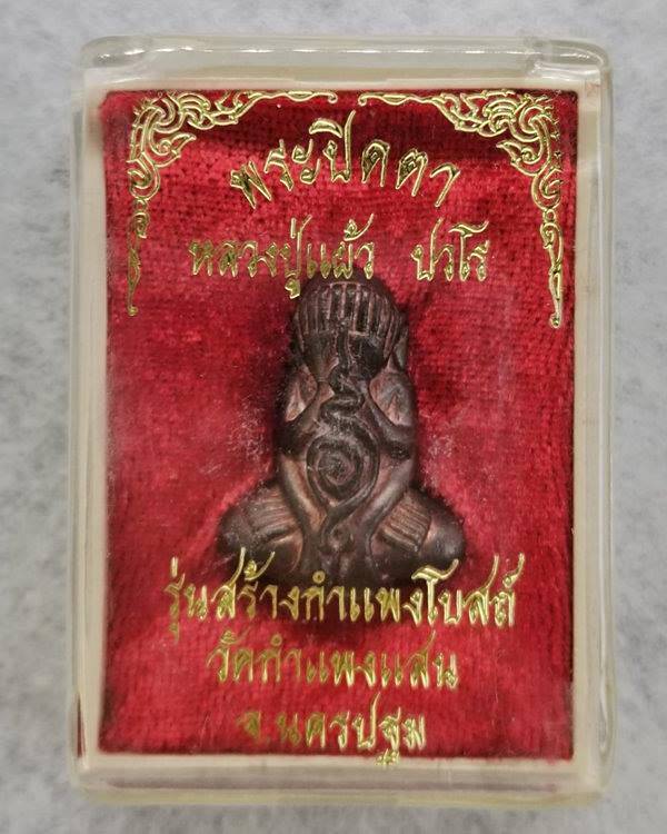 พระปิดตา ปี47 หลวงปู่แผ้ว ปวโร รุ่นสร้างกำแพงโบสถ์ วัดกำแพงแสน จ.นครปฐม มีกล่อง |