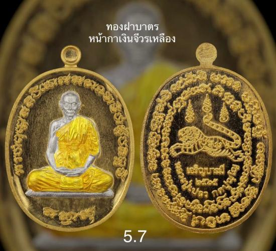 เหรียญเจริญบารมี ปี 2565 เนื้อทองฝาบาตร หน้ากากเงินลงยาจีวรเหลือง หมายเลข **58** สร้างน้อย 140 เหรียญ หลวงปู่เปลว วัดเจ็ดลูกเนิน ( ไม่มีกล่อง ) ขนาดความสูงจากหูเหรียญ 4 ซม กว้าง 3 ซม.