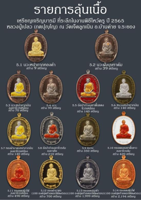 รายละเอียด เหรียญเจริญบารมี ปี 2565 เนื้อทองฝาบาตร หน้ากากเงินลงยาจีวรเหลือง หมายเลข **58** สร้างน้อย 140 เหรียญ หลวงปู่เปลว วัดเจ็ดลูกเนิน ( ไม่มีกล่อง ) ขนาดความสูงจากหูเหรียญ 4 ซม กว้าง 3 ซม.