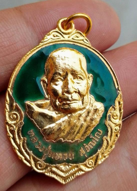 เหรียญหลวงปู่แหวน รุ่นถิ่นกำเนิด ปี 2532 เนื้อกะไหล่ทองลงยาเขียว