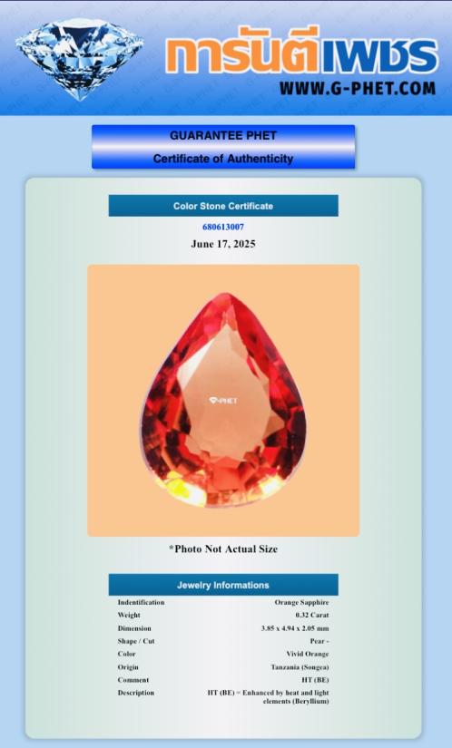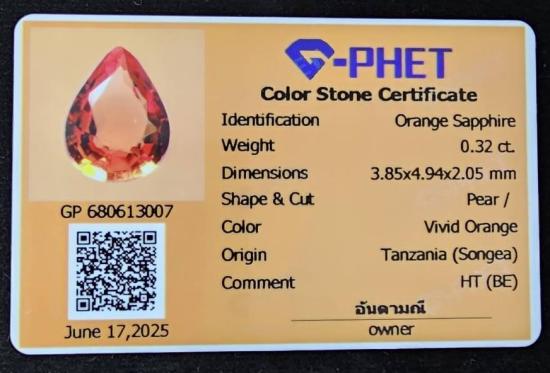 พลอยสีส้มสวยน้ำหนัก 0.32 กะรัต