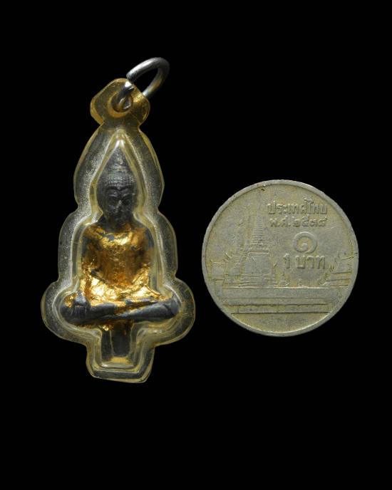 วัดใจ พระยอดธง เนื้อชินตะกั่ว เลี่ยมพลาสติกโบราณ |