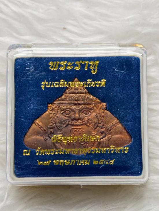 เคาะเดียวแดง พระราหู ขนาด3 ซม เนื้อทองแดง หมายเลข 4625 รุ่นเฉลิมพระเกียรติ ปี2548 จัดสร้างโดยวัดมหาธาตุวรมหาวิหาร จังหวัดนครศรีธรรมราช สวยๆไม่ผ่านการใช้เก่าเก็บ |