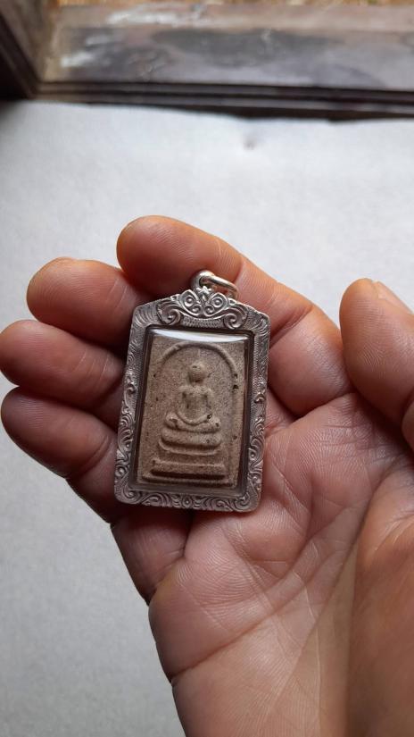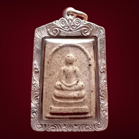 พระสมเด็จวัดโนนผึ้ง พระยุคต้นของหลวงปู่หมุน เนื้อผงพุทธคุณ 108 ผสมว่านและชานหมากโรยเพชรหน้าทั่ง พิมพ์นิยมเศียรกลม เลี่ยเงินแท้กันน้ำพร้อมห้อยบูชา