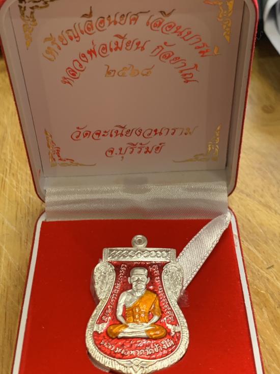 ชื่อพระเครื่อง 1 ใน 10 เหรียญเสมาหน้าเลื่อนหลวงปู่ทวด - หลวงพ่อเมียน รุ่น เลื่อนยศ เลื่อนบารมี วัดจะเนียง บุรีรัมย์ หลวงปู่มหาศิลา (หลวงปู่ศิลา)อธิษฐานจิต เนื้อเงินลงยาแดง เลขสวย 2 สวยมาก กล่องเดิมกำมะหยี่ครับ