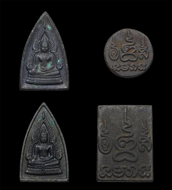 พระสมเด็จ+ จันทร์ลอย + ชินราช 2 หน้า (รวม 4 องค์) เนื้อแร่บางไผ่ วัดนครอินทร์ จ.นนทบุรี พ.ศ.2539 หลวงพ่อคูณ ปริสุทฺโธ (ปลุกเสกเดี่ยว ณ วัดบ้านไร่ จ.นครราชสีมา ก่อนพิธีพุทธาภิเษก) พร้อมกล่องเดิม |