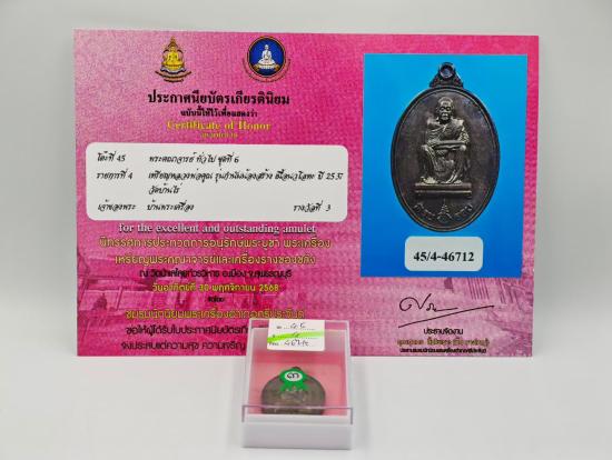 เหรียญหลวงพ่อคูณ รุ่นครบ 6 รอบ เนื้อนวโลหะปี 2537 พร้อมใบประกาศ