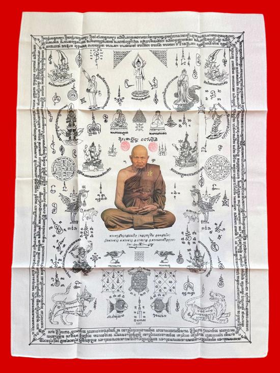 ผ้ายันต์ เมตตา 7 รอบ ปี 40 หลวงปู่ทิม วัดพระขาว รวมยันต์ สีครีม นิยม