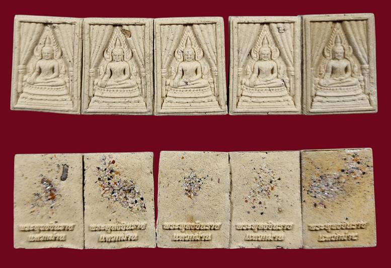 ( 5 องค์ ) พระพุทธชินราช เนื้อผงมวลสารเก่า พิมพ์แหวกม่าน หลังโรยพลอย (แจกกรรมการ) รุ่น 70 ปี พุทธสมาคม วัดพระศรีรัตนมหาธาตุวรวิหาร จ.พิษณุโลก สภาพสวยเดิมๆครับ