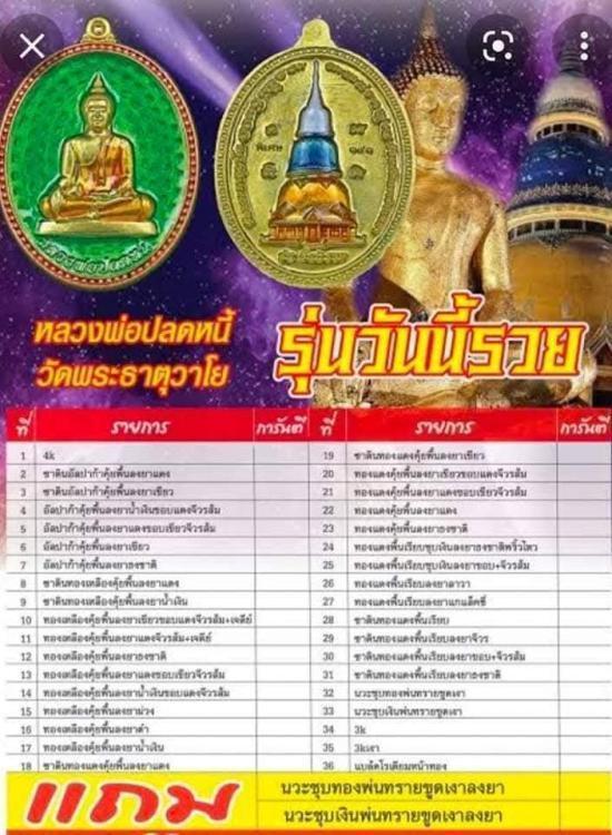เหรียญ หลวงพ่อปลดหนี้"รุ่น ปลดหนี้วันนี้รวย" วัดพระธาตุวาโย จ.ฉะเชิงเทรา รายการลุ้นเนื้อ ซีนเดิมๆ ชุด5องค์ ลุ้นเนื้อสูงๆเลขสวยๆ ประกันแท้แน่นอน