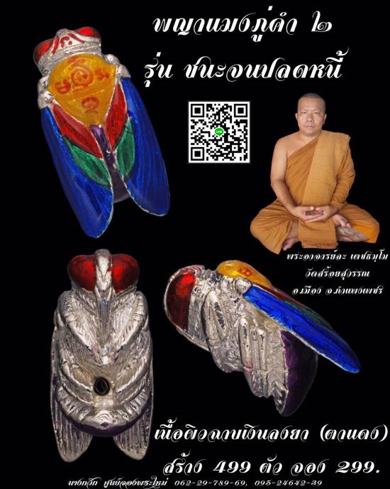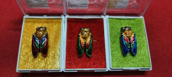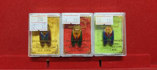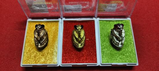 แบ่งปัน พญาแมงภู่คำ2 รุ่นชนะจนปลดหนี้ พระอาจารย์ละ เตชธมฺโม วัดสร้อยสุวรรณ อ.เมือง จ.กำแพงเพชร ปี62 ชุด3องค์ -เนื้อขันลงหินลงยาตะกรุดเงิน หมายเลข144 -เนื้อทองระฆังลงยาตะกรุดทองแดง หมายเลข198 -เนื้อฉาบ